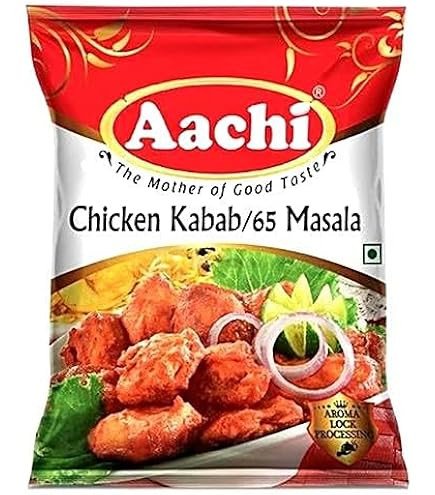 Aachi Chicken Kabab 65 Masala (18g) is a convenient, ready-to-use spice mix designed to create authentic, restaurant-style spicy and crispy chicken, kababs, or fried snacks at home. It combines red chili, cumin, ginger, garlic, and other spices to deliver a bold flavor, requiring only chicken and minimal preparation, with a 365-day shelf life.