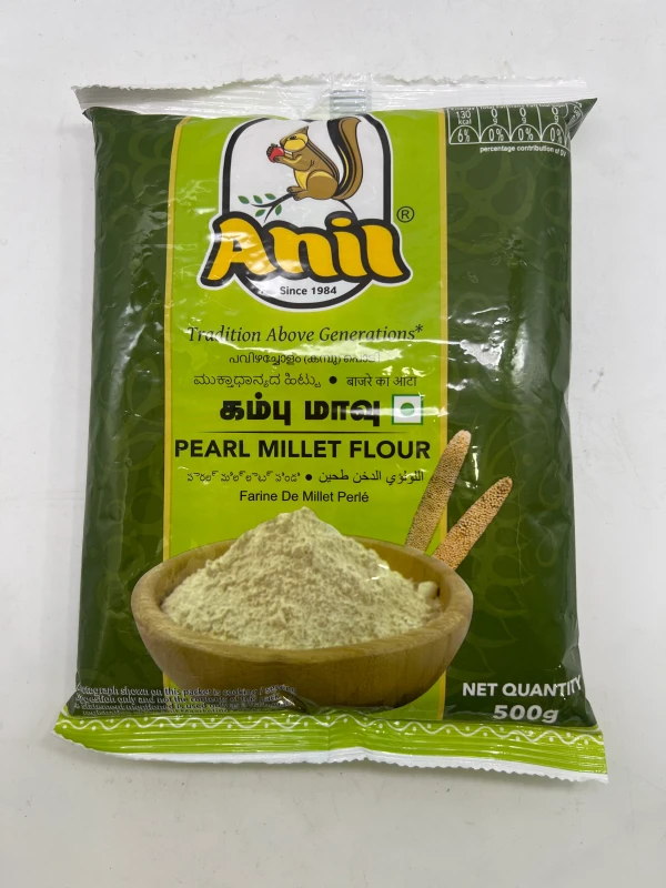 Anil Pearl Millet Flour (Kambu Flour) is a nutritious, 100% gluten-free, and finely milled flour from Anil Foods known for its rich iron, zinc, and dietary fiber content. This healthy, energy-boosting, and naturally cooling flour is ideal for traditional dishes like porridge, rotis, and dosas, offering a nutty flavor perfect for a healthy diet.