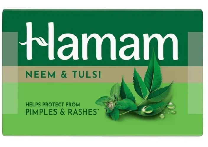 Hamam Neem, Tulsi & Aloe Vera soap is a traditional, herbal bathing bar designed for deep cleansing and protection against skin impurities, often used for preventing pimples, rashes, and body odor. While the search results show the product in 100g, 150g, and larger pack sizes, the description below applies to the formulation of Hamam's core Neem & Tulsi soap range.
