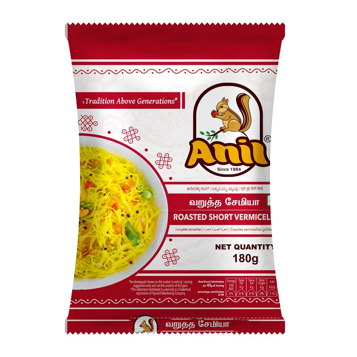 Anil Roasted Short Vermicelli (180g) is a pre-roasted, premium wheat-based Indian noodle (semia) that offers quick, convenient cooking. It is perfect for both sweet dishes like kheer and savory dishes like upma or pulao. The 180g pouch provides a ready-to-use, versatile ingredient for breakfast, snacks, or dessert.