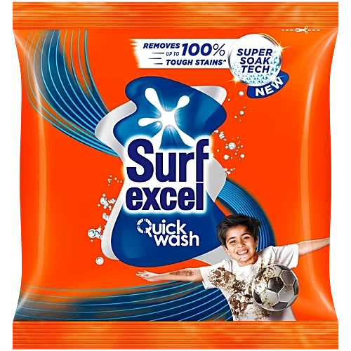 Surf Excel Quick Wash 500g is a premium detergent powder designed for rapid stain removal, combining the power of lemon and bleach to tackle tough stains like oil, curry, and chocolate. It features X-tra cleaning particles that dissolve quickly, making it ideal for both bucket and machine washing, even in short cycles.